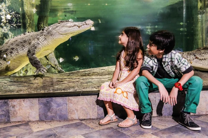 Poursuivez l'aventure en visitant l'Underwater Zoo. Cette expérience éducative offre une approche interactive sur l'écologie et la conservation de la vie marine. Observez une variété d'espèces exotiques à travers trois zones écologiques distinctes : la forêt tropicale, le littoral et les océans profonds. D'amusantes loutres, de gracieux pingouins et le gigantesque King Croc, l'un des plus grands crocodiles du monde, vous attendent pour une aventure mémorable.