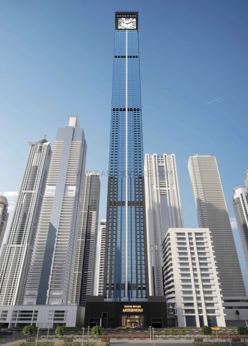🎖️ Au cœur de Dubai Marina, Aeternitas Residences allie le luxe de London Gate à l'élégance de la marque horlogère suisse renommée Franck Muller. Cette résidence exclusive se trouve dans la plus haute tour de Dubai Marina, avec une horloge Franck Muller ornant son sommet – la plus haute du monde.
