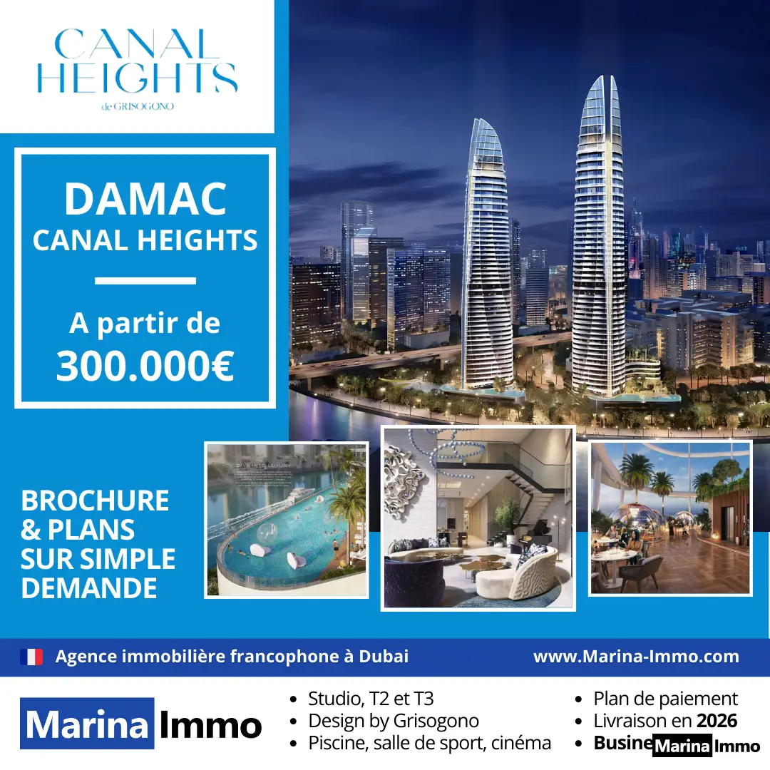 Canal Heights est une résidence de deux tours au design moderne et épuré située en bordure du Dubai Canal, à quelques mètres seulement du centre d’affaires de Bay Square et à quelques minutes du Dubai Mall et du Burj Khalifa. Conçues par la prestigieuse maison de haute joaillerie, De Grisogono, ces tours seront sûrement un point de mire pour les passants. Les visiteurs et résidents seront accueillis dans un immense lobby et pourront profiter d'une piscine façon resort, d'un club house, d'une salle de sport et d'un concierge. En somme, Damac a mis tout en œuvre pour offrir un projet immobilier de haut standing avec Canal Heights.