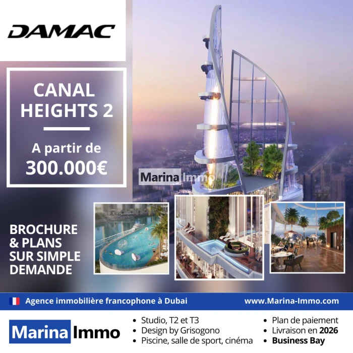 Canal Heights est une résidence de deux tours au design moderne et épuré située en bordure du Dubai Canal, à quelques mètres seulement du centre d’affaires de Bay Square et à quelques minutes du Dubai Mall et du Burj Khalifa. Conçues par la prestigieuse maison de haute joaillerie, De Grisogono, ces tours seront sûrement un point de mire pour les passants. Les visiteurs et résidents seront accueillis dans un immense lobby et pourront profiter d'une piscine façon resort, d'un club house, d'une salle de sport et d'un concierge. En somme, Damac a mis tout en œuvre pour offrir un projet immobilier de haut standing avec Canal Heights.