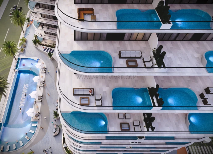 Portofino ne se contente pas d'être un autre projet résidentiel. C'est un chef-d'œuvre architectural qui s'élève majestueusement dans le ciel de Dubaï. Que vous optiez pour un studio ou un appartement, chaque unité est conçue avec une attention méticuleuse aux détails. Et le clou du spectacle ? Des piscines privées sur les balcons ! Oui, vous avez bien lu. Votre propre oasis privée avec une vue imprenable sur la ville.